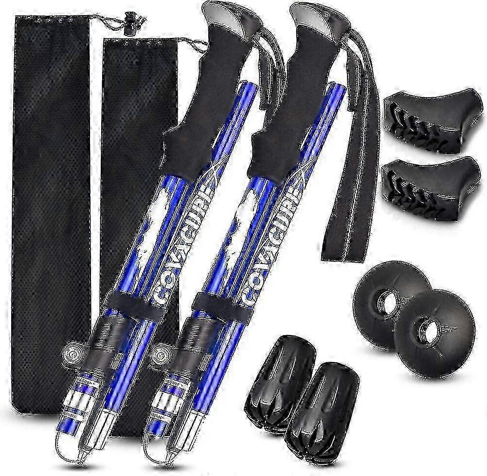 Trekking Poles - 2 Pack Collapsible Aluminum Hiking Poles With Quick Lock System, Folding, Telescopic, Ultralight For Senior Trekking, Backpacking, Hi