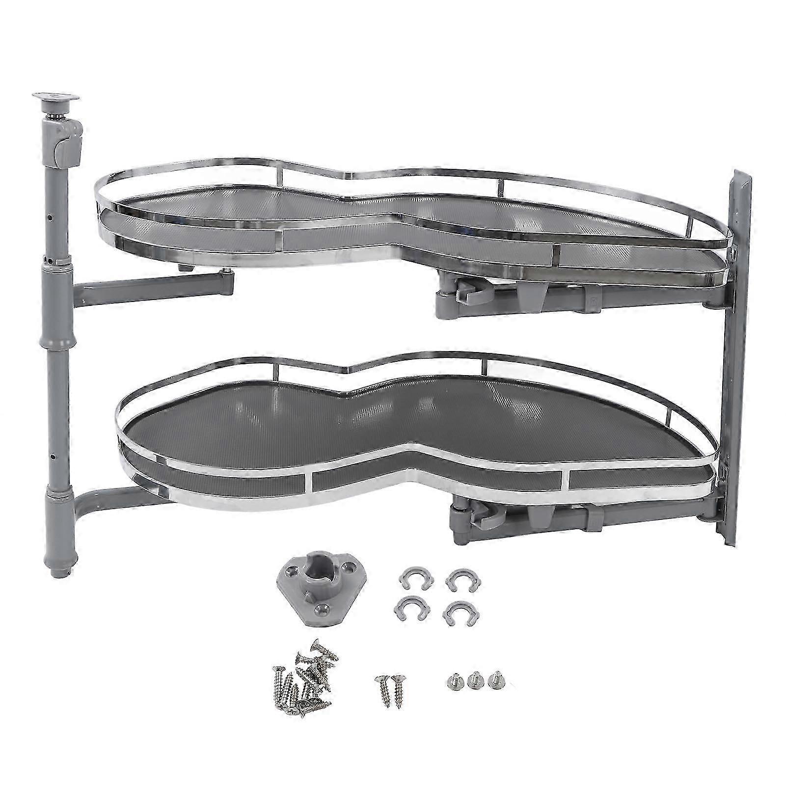 Blind Corner Cabinet Tray 2 Tier Height Adjustable Strong Load Bearing Cabinet Swing Pull Out Organizer Right Open