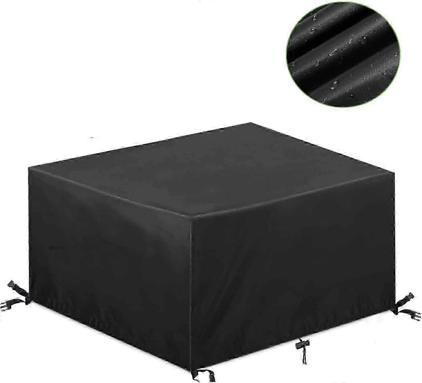 Oxford Fabric UPGRADEDAccording to the customers' demand, we have upgraded our outdoor furniture cover in material and design. The furniture cover with Upgraded Oxford Polyester features great waterproof ability and durability. Four velcros on each corner has been applied to better tie on the furniture legs. Double stitch instead of single needle to provide huge anti-tear against wind. STRONG & DURABLEThe patio table waterproof cover is upgraded to high density oxford polyester fabric with waterproof coating. Protect furniture from damage by UV. The material is anti-tear, more powerful against rain, wind, dust, snow, fierce weather, bird droppings. Thus, the duration of the covers will be extended. SIZEThe size of the sofa cover is 48.4'x48.4'x29' (123x123x74cm). Fits for a maximum of 4 seats furniture set. Even in harsh environments, your furniture can be safe, clean and dry. MULTI-FUNCTIONWaterproof furniture protective cover for garden table is suitable for most shape of indoor/ outdoor furniture, including rattan or oval garden furniture. The large size makes sure a wide range of protection. The smooth surface makes it easy to clean, just rinse the cover with water, then dry with a rag. WARM TIPSBecause the furniture does not happen to be a flat plane, the low points of cover will gather water and debris, which will shorten the lifetime of the cover. We suggest to put a chair or round object under the cover to raise up middle part, so that the water and debris can flow down. The raise part also can provide airflow between cover and furniture.