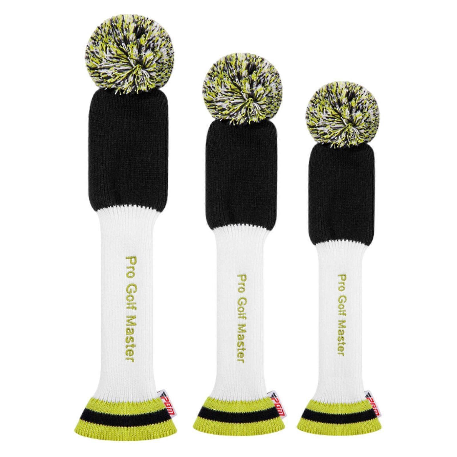 Knitted Golf Club Head Covers in Green with PomPom Decoration