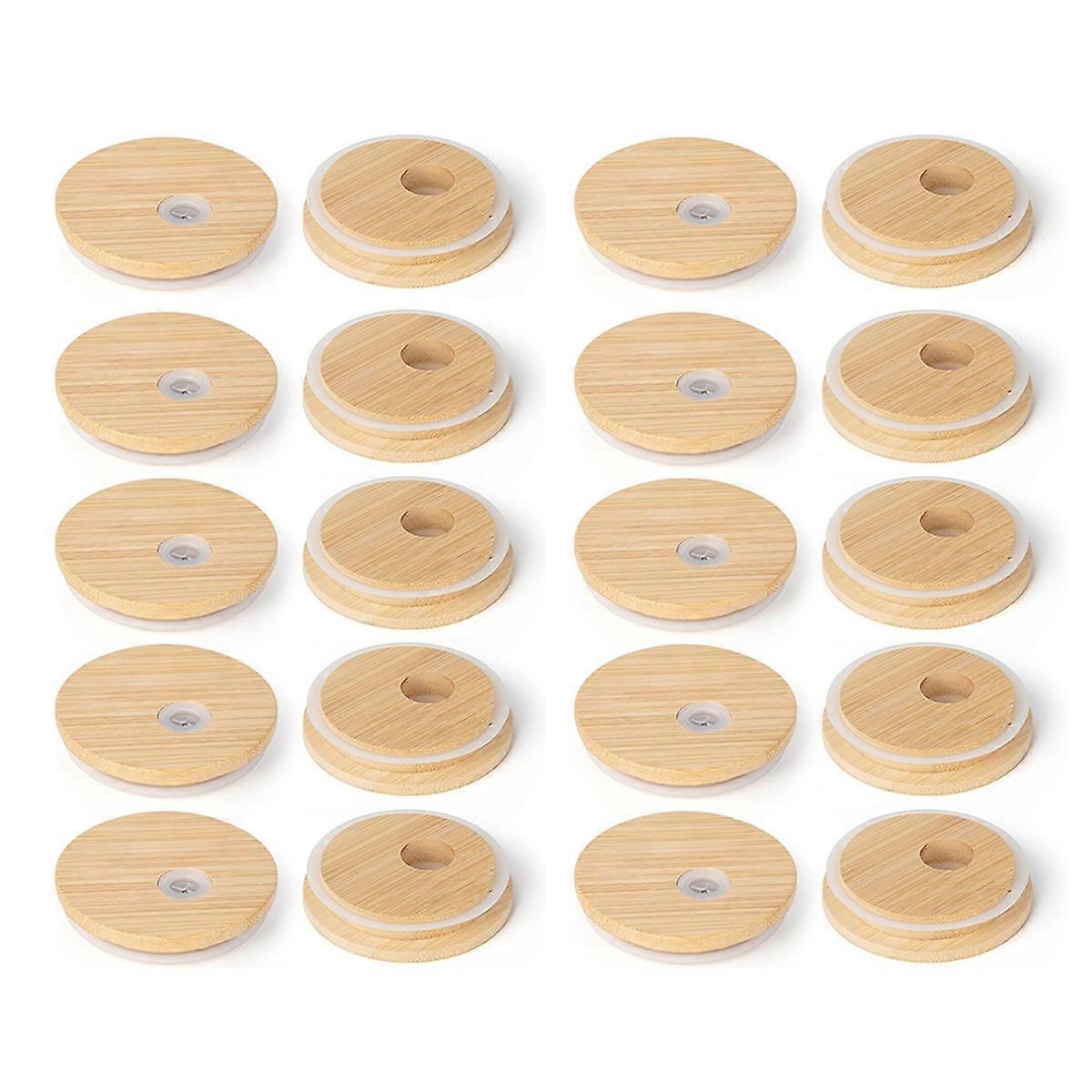 Bamboo Lids with Straw Hole, 2.76inch/70mm Canning Lids (20Pcs)