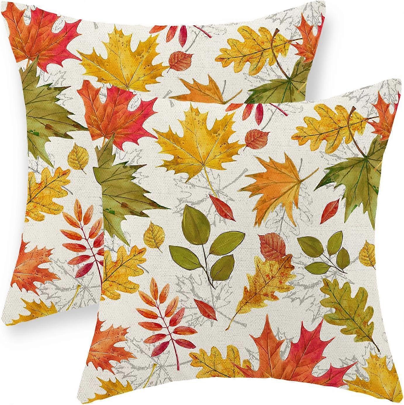 Fall Pillow Covers 20x20 Set of 2 Orange Maple Leaves Throw Pillow Covers Autumn Harvest Thanksgiving Decoration Outdoor Pillowcase Fall Home Decor Li