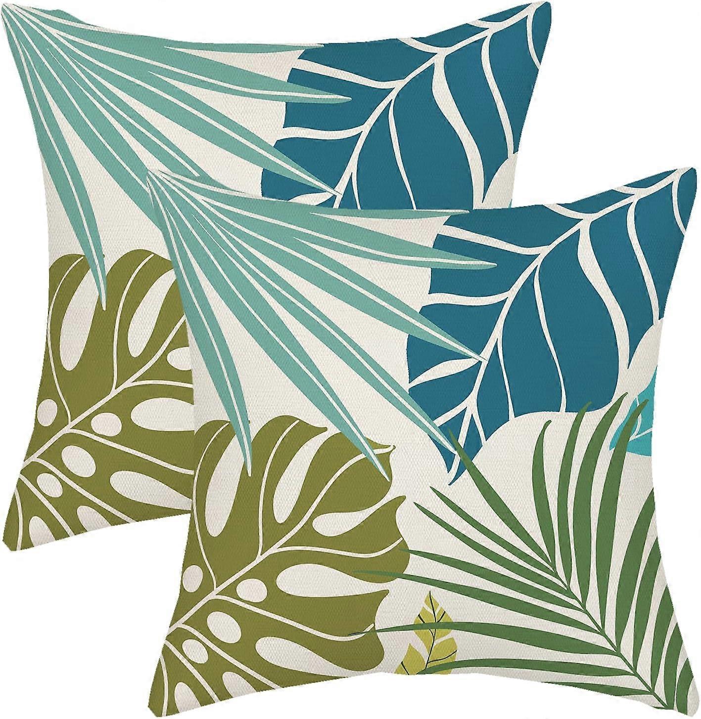 Summer Outdoor Pillow Covers 16x16 Aqua Teal Sage Green Navy Blue Palm Throw Pillows for Couch Tropical Leaf Pillowcase Leaves Plant Decorative Cushio