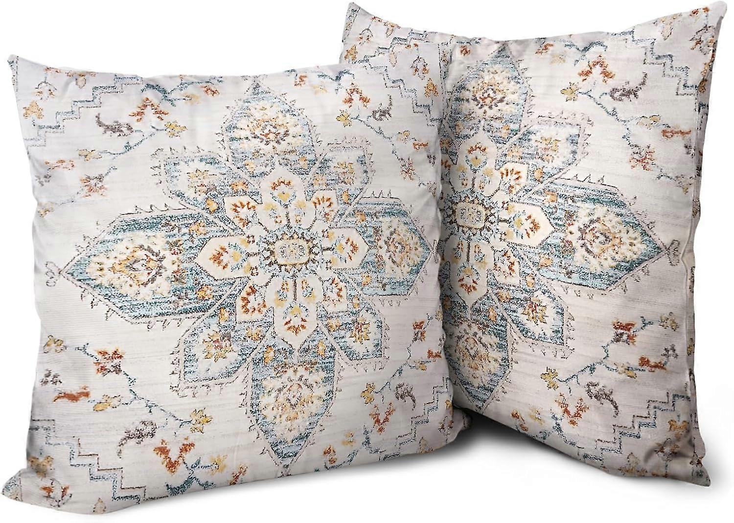 Boho Throw Pillow Covers 16x16 inch Set of 2 Monaco Rug Persian Carpet Double Sided Pattern Cotton Soft Pillow Case Cushion Cover Bohemian Pillowcase