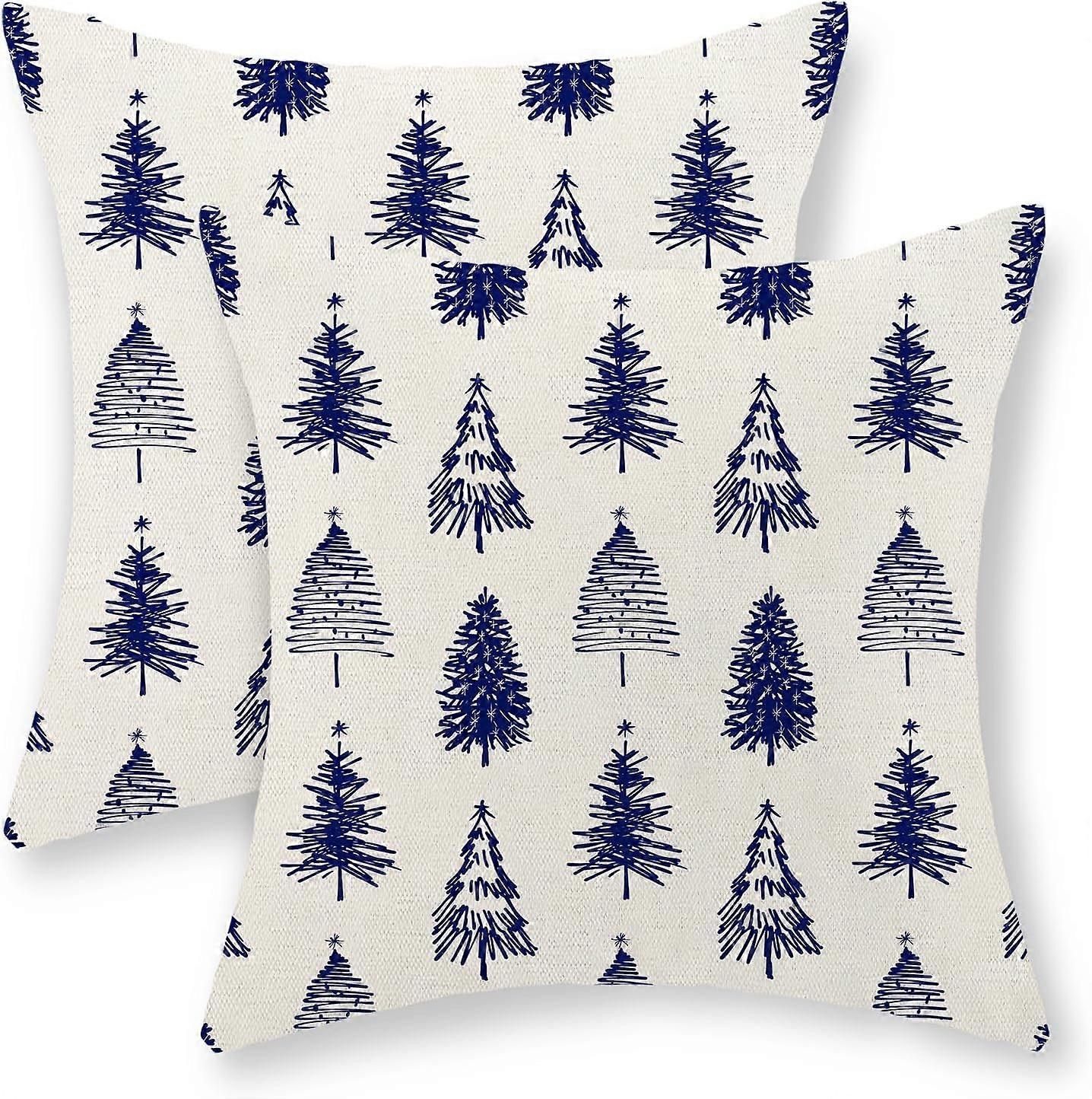 Christmas Pillow Covers 18x18 Set of 2 Christmas Decorations Blue Pillowcase Geometric Christmas Tree Throw Pillows Winter Xmas Farmhouse Holiday Deco