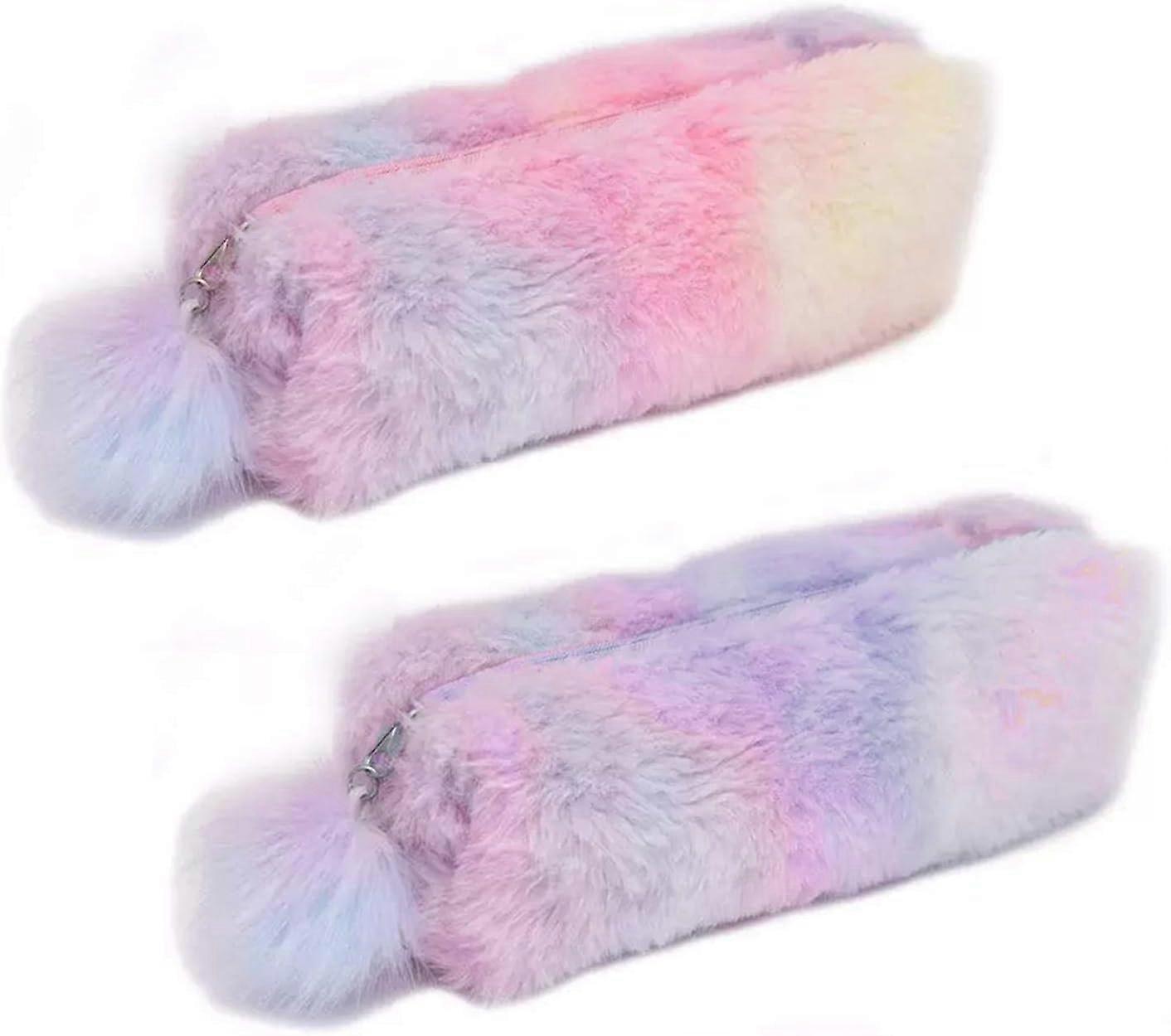 Plush Rainbow Pencil Case for Girls Fluffy Pencil Case Cute Rainbow Pencil Holder Soft Pencil Case Fluffy Pencil Bag Makeup Pouch Colored Storage Bags