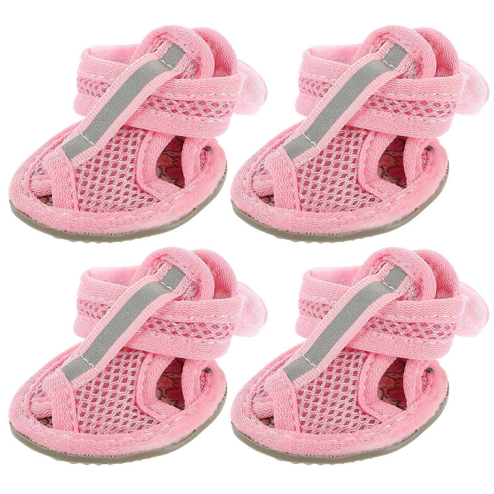 Dog Feet Covers Summer Breathable Pets Dog Boots Pink Size 4 Mesh Rubber Sole Ventilation 4Pcs