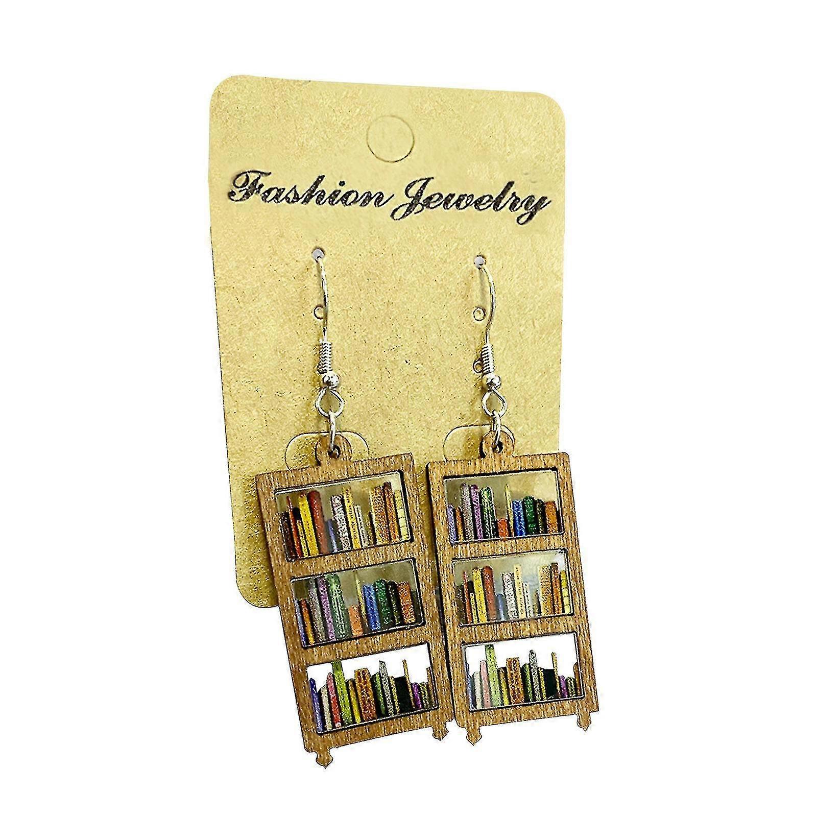 Bookcase Dangle Earrings With Book Shelves Patterned Acrylic