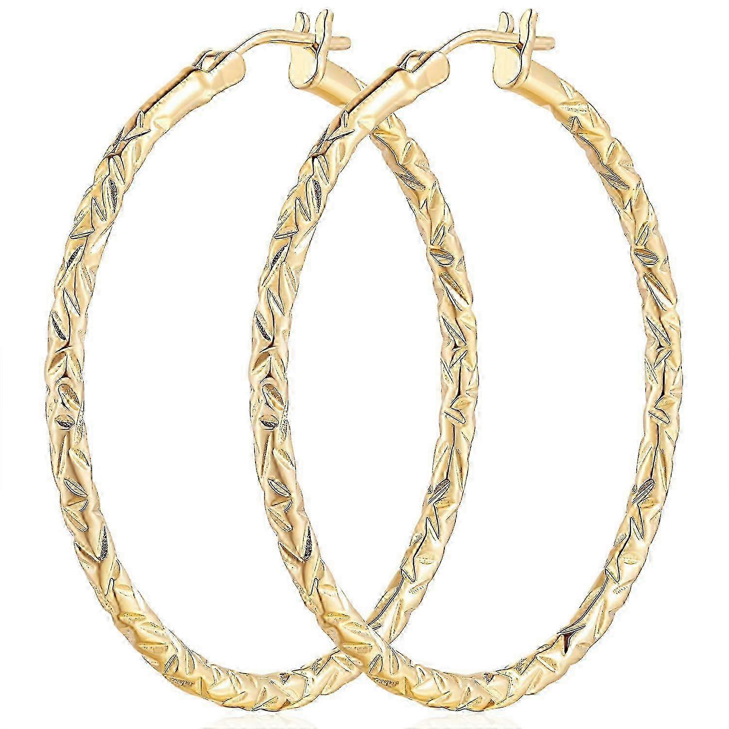 Gold Hoop Earrings 14K Gold Hoop Earrings for Women Large 14K Earring Hoops Interlaced Engraving Design Womens Earring Hoops 35/40mm Ref: 3446