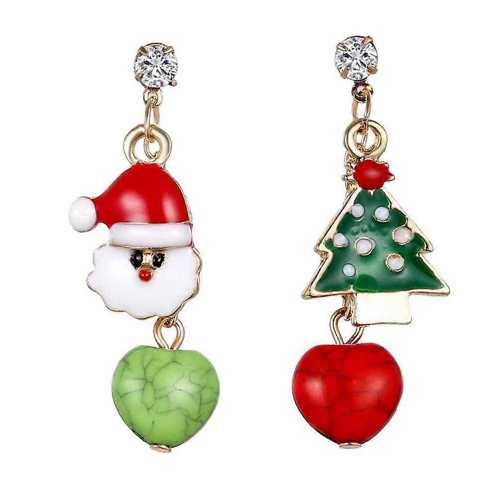 Unusual Earrings Asymmetric Earrings Christmas Tree Santa Claus Rhinestone Dangle Jewelry for Women 1 Pair