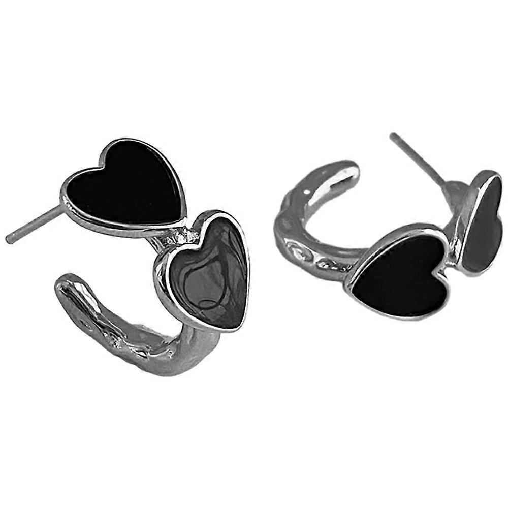 Fashionable Heart Earrings for Women Perfect for Casual Weekend Outfits and Office Wear Crafted in Elegant Black Brass and Silver 1 Pair
