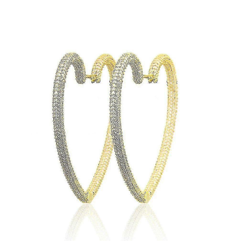 Large Earrings Heart Hollow Golden Diamond Embedded Fully Jeweled Copper For Daily Use