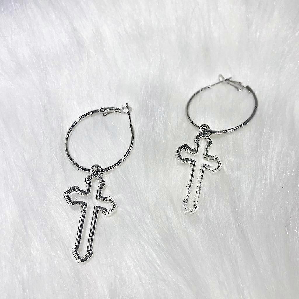 Hollow Cross Dangle Earrings Harajuku Metal Geometric Drop Earrings Jewelry-r