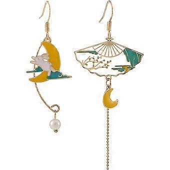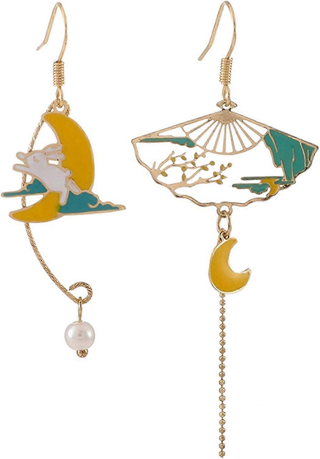 Asymmetric Fan Earrings, Sector Drop Earrings, Small Fan Dangle Earrings Cute Retro Ethnic Pretty Stud Earrings Bunny -