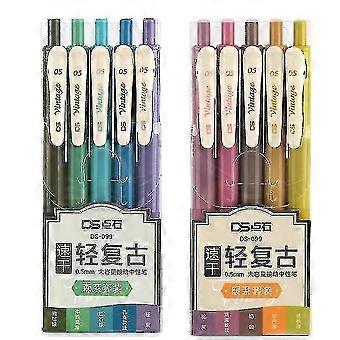 Retractable Gel Pens Quick Dry Ink Pens Fine Point 0.5mm 10 Assorted Unique Vintage Colors For Journaling, Drawing, Doodling, And Notetaking