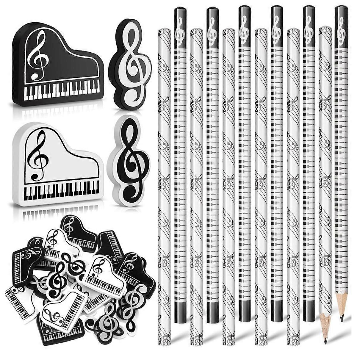 Wide : These music themed items are attractive with black and white colors highlighting music notes piano keyboard patterns; The theme caters to music enthusiasts, making this set a popular choice among students and teachers alike Delicate Design: the pencils offer a nice grip due to their hexagonal design; They are not easy to roll off desks, making them an invaluable tool for classrooms and offices, convenient and practical Quality Material: the novelty erasers included in our set are made from quality rubber while the pencils are made of quality wood; This ensures a safe product for your children, while also providing a clean, smudge free erasing experience for the users Perfect Choice for Music Inspired Themed Parties: our music pencils as the Perfect accessory for music themed events; The enticing look of the music notes and classic colors is an attention getter and would make nice party presents, ensuring you leave a memorable mark The Music Lovers: these stylish music teacher supplies make an Perfect children, teachers, or students with a passion for music; Be it the choir, concert, classroom, or music workshop, these exclusive pencils make their mark everywhere Colour:As Shown Material:Wood Package Contents: 12 x Music Pencils 12 x erasers Only the above package content, other products are not included. Note: Light reflection and different displays may cause the color of the item in the picture a little different from the real thing. The measurement allowed error is +/- 1-3cm.