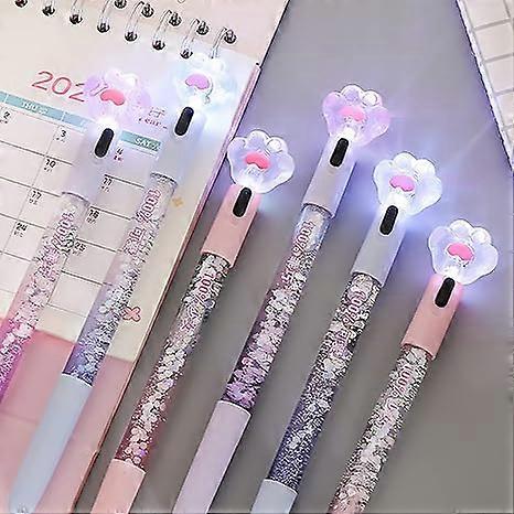 Cat Pens, 6 Pcs Cat Paw Kawaii Pens and 10 Pcs Refills, Cool Fun Led Glowing Pens 0.5mm Black Ink Needle Gel Pen, Cute Kawaii School Supplies for Teen