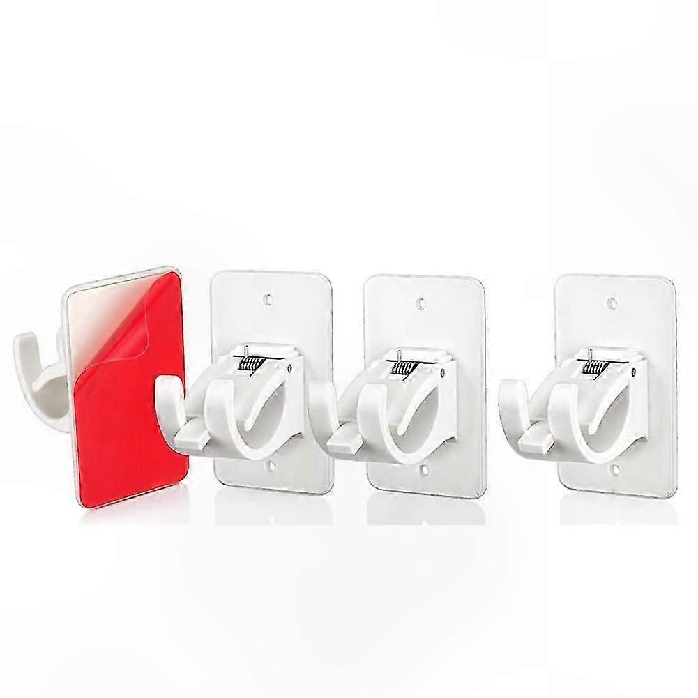Wall Mount Curtain Rod Brackets, 4-Pack Self-Adhesive Hooks for Drapery Support, No Drill Required Crossbar Hangers