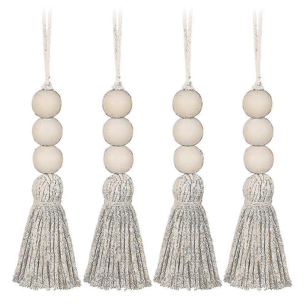 Wood Bead Garlands,farmhouse Beads Tassels, Rustic Country Decor Prayer Beads Door Knob Decor(4pcs)