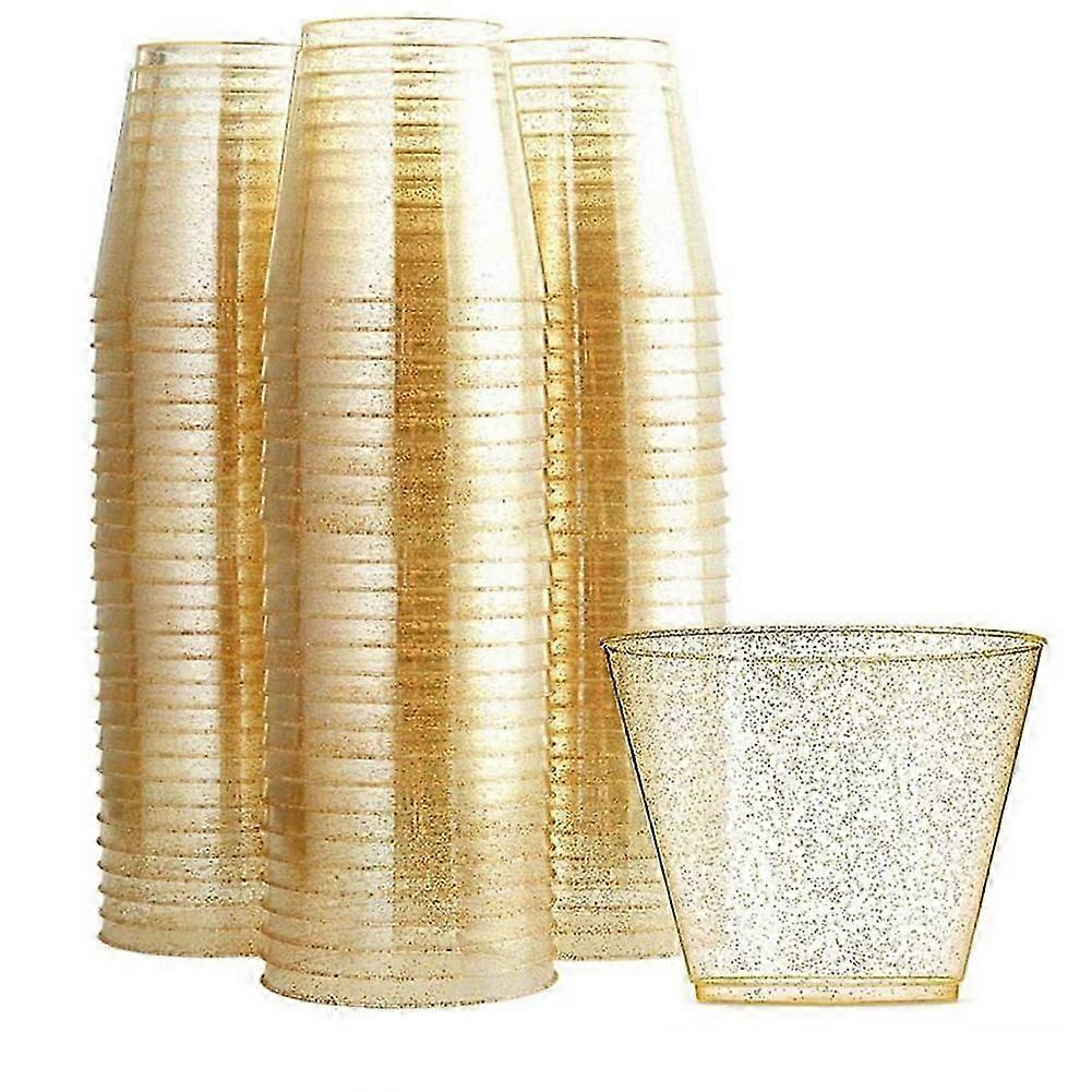 Gold Plastic Cups Clear Plastic Wine Glasses, Fancy Disposable Hard Plastic Cups with Gold Glitter for Party Cups 50Pcs js
