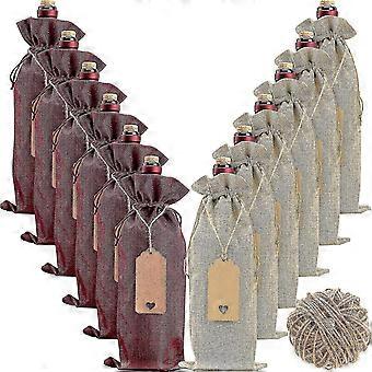 أكياس النبيذ الخيش أكياس هدايا النبيذ ، 12 قطعة أكياس زجاجة النبيذ مع الأربطة ، العلامات والحبال