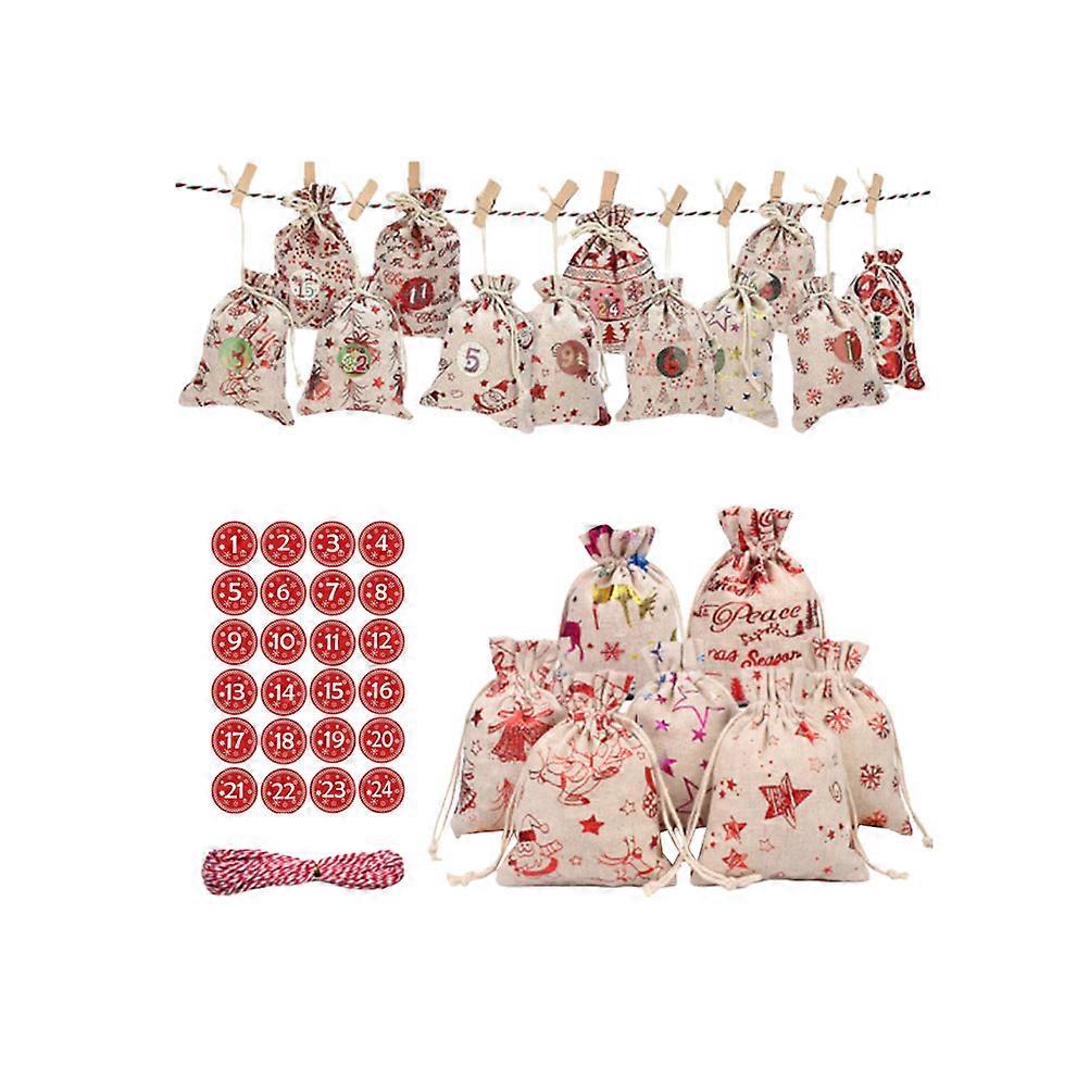 Advent Calendars Bags DIY Hanging Storage Pouch Red Approx 13.5x9.5x0.01cm 50Pcs