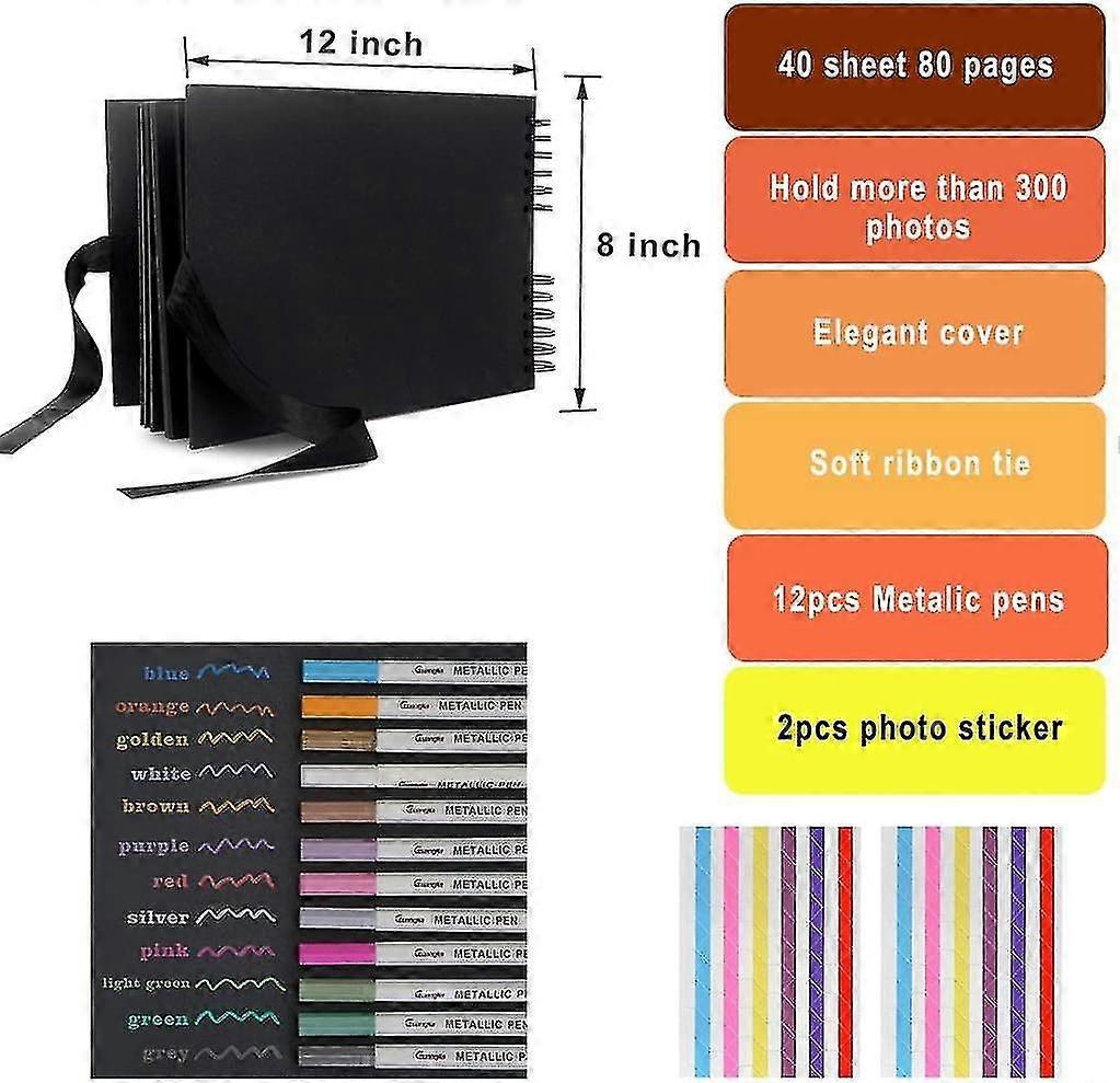Photo Album 80 Black Pages Scrapbook Photo Album For Self-design 40 Sheets 29x21.5cm Photo Book For Gluing Diy