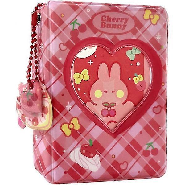 3 Inch Photo Album Mini Photo Album, Heart-shaped Hollow Photo Album Holder 40 Pockets With Bear Pendant and Rabbit Card (red)