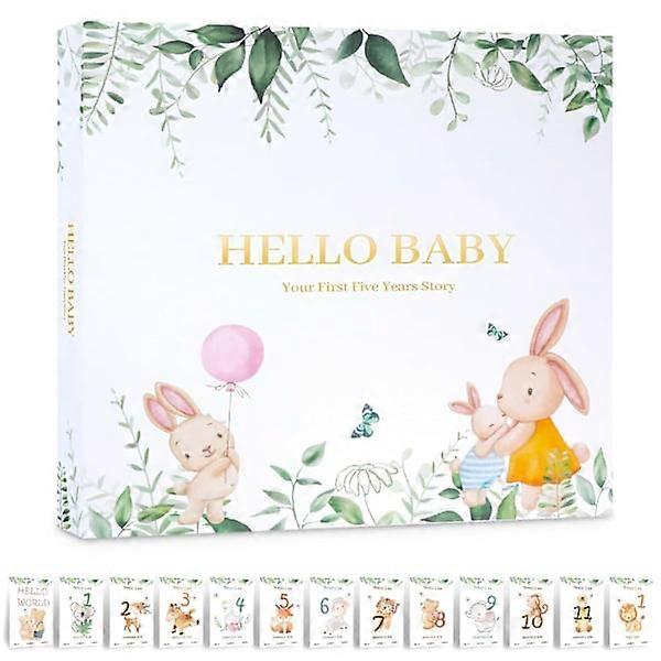 Baby Book for Lasting Memories: A comprehensive journal, album, and record book from birth to age 5, capturing every milestone of your child's growth. Beautiful Baby Memory Book: Features a gold spiral binding, full-color printing, a gender-neutral forest theme, and heavy archival paper. With 118 designed pages divided into 6 chapters, it offers ample space for photos and notes, all protected by a durable cover. Sweet Memory Album: Cherish every moment with your baby. This baby journal is perfect for recording memories and includes space for 47 photos. Six large souvenir folders are included for saving special baby items, extra photos, and important documents. Milestone Cards Included: Comes with 13 beautifully designed milestone cards to capture your baby's growth and development. Use these adorable photo props to document your baby's birth and monthly milestones. Hartfelt Gift for Expecting Parents: An ideal choice for baby showers, gender reveals, or new parent gifts. This gender-neutral book is perfect for a newborn girl or boy, helping to store precious memories in a beautifully crafted book.