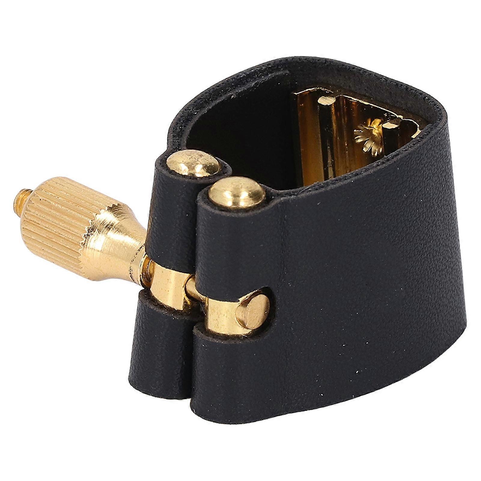 Alto Saxophone Mouthpiece Ligature with Leather Strap and Metal Clamp Reed Guard Fastener Compact Black