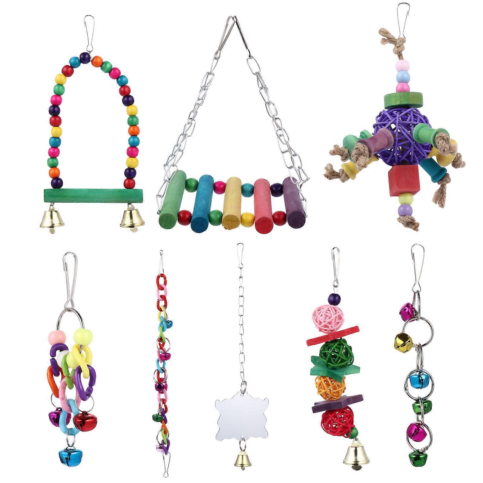 Colorful Bird Parrot Toys Hanging Hammock Swing Bell Chewing Toy For Cage Playtime 8Pcs