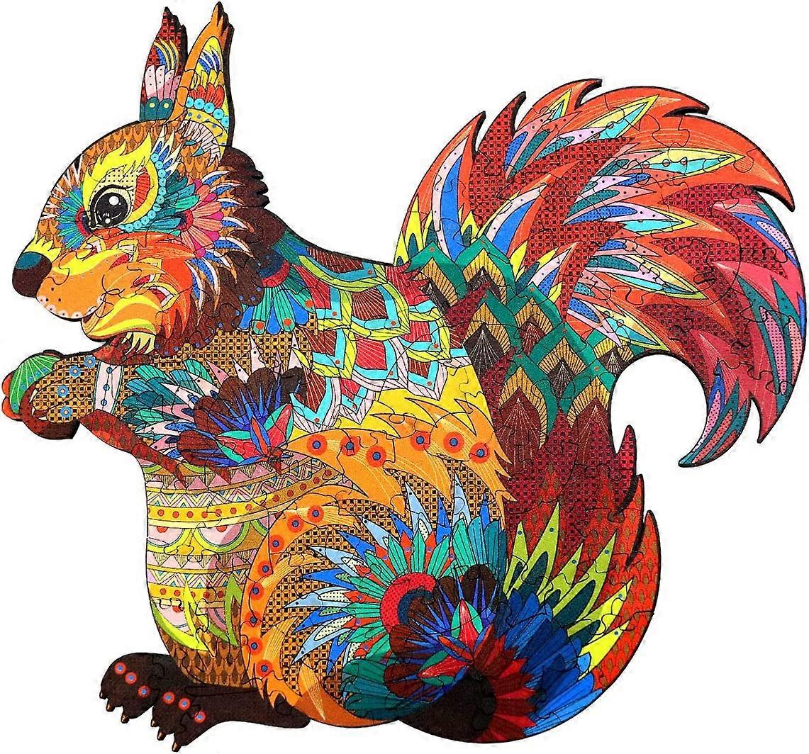Unique Wooden Puzzles for Adults Squirrel Animal Shape Magic Wooden Jigsaw Puzzle Difficult Irregular Wooden Puzzles with Unique Pieces, 100 Piece, Sm