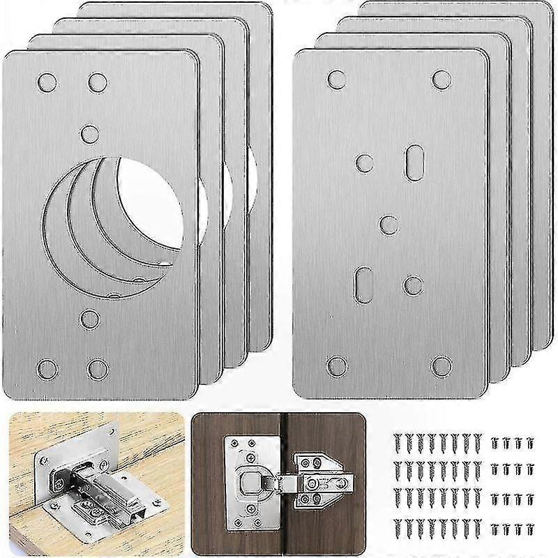 Hinge Reinforcement Plates with Pre-Drilled Holes, 8-Pack with 48 Screws for Wood Furniture and Shelves, Easy-to-Install Repair Kit