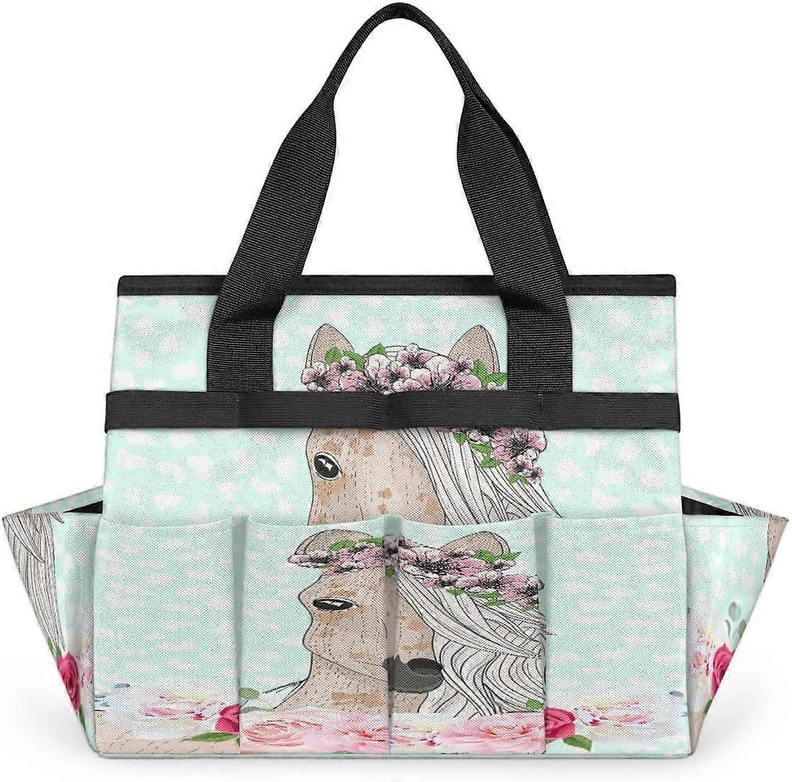 Watercolor Horse Wreath Garden Tool Bag Waterproof Garden Tool Storage Bag Heavy