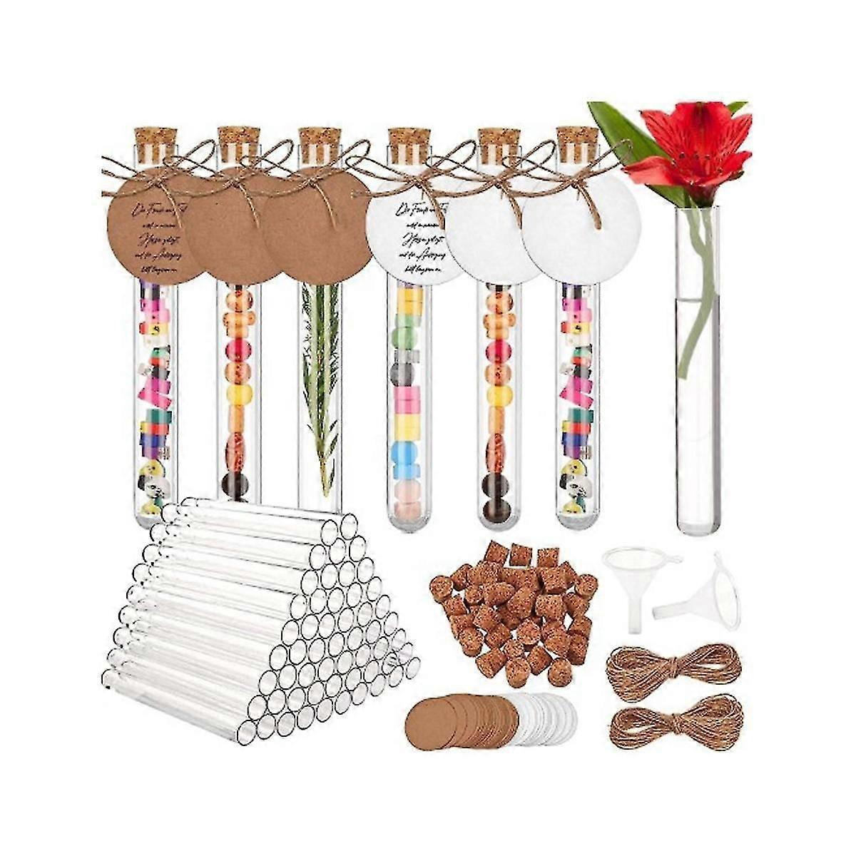 60 Pcs Test Tube With Cork, 16X150mm(20Ml), Plastic Test Tubes With Kraft Paper Tag & Rope Funnel
