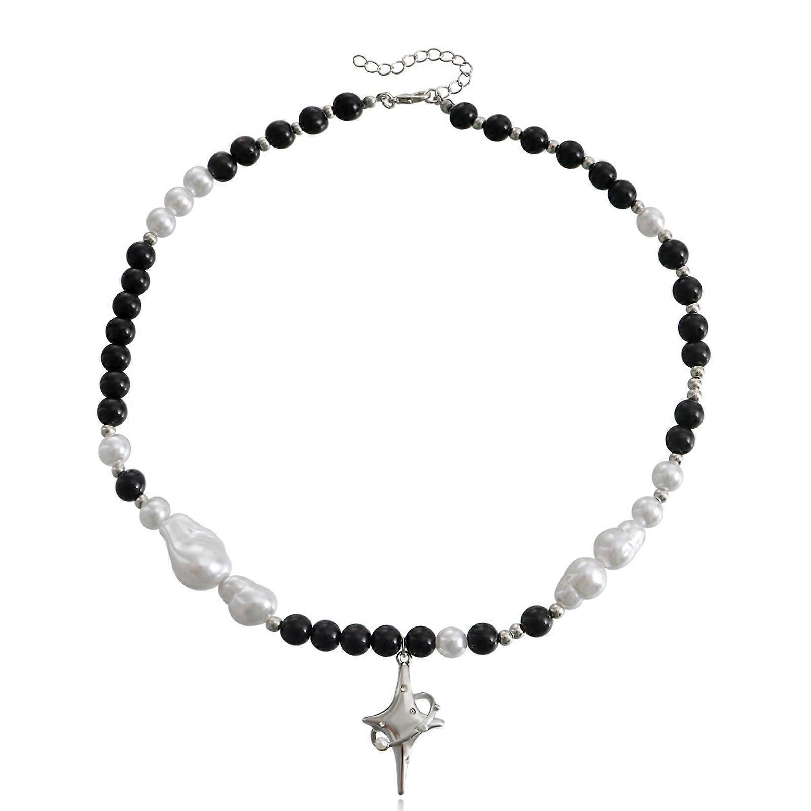 Female Trend Collarbone Chain Four-pointed Star Necklace Student Simple Temperament Black and White Beaded Necklace