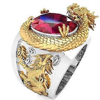 Elegant Dragon Red Crystal Ring Luxurious Style 3d Carving Alloy Finger Jewelry With Glass