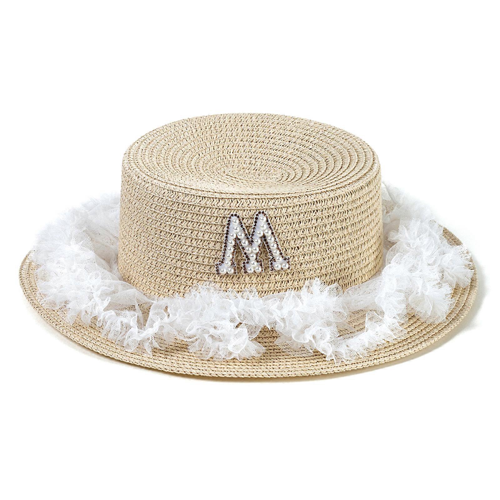 Stylish Lace Edge Sun Hat Women Trendy Design with Letter Pattern Cap for Indoor Outdoor Traveling Camping Hiking White