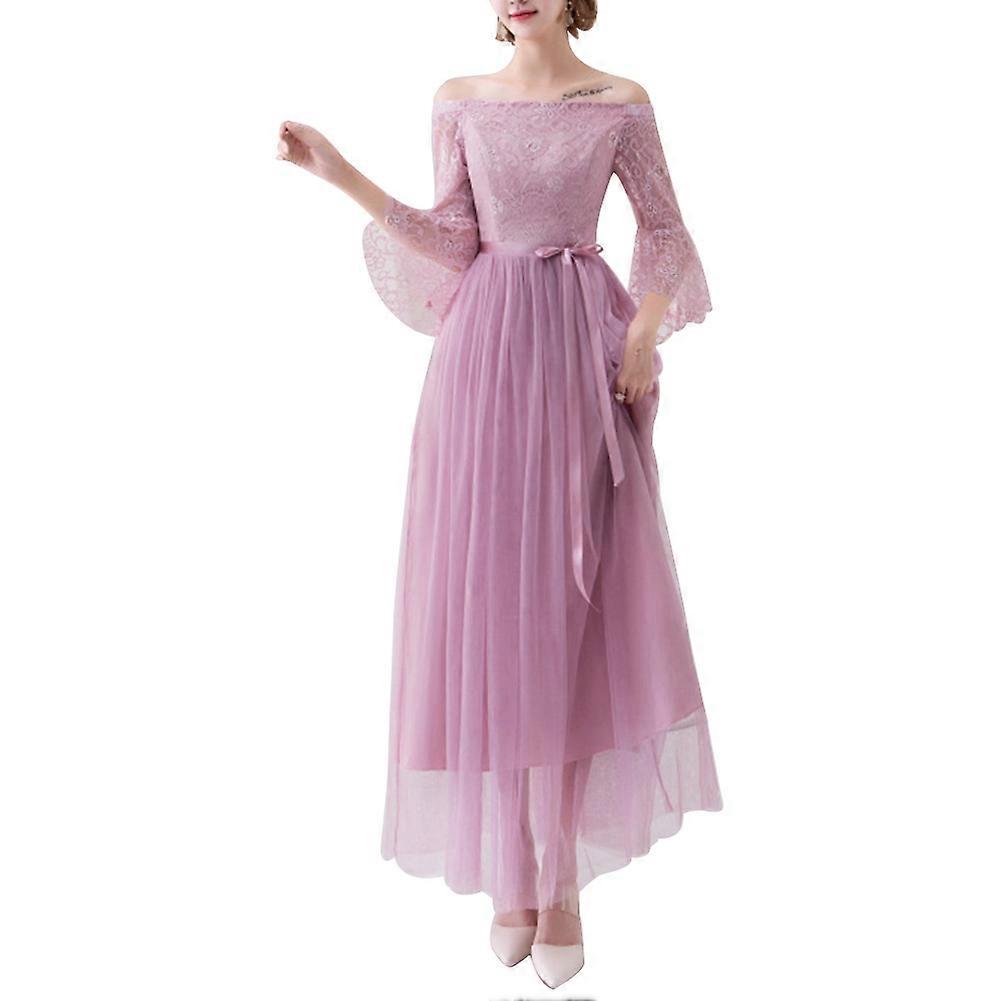 Stylish Women Bridesmaid Dress Bowknot Mesh Lace Long Formal Dress(B, One Size)