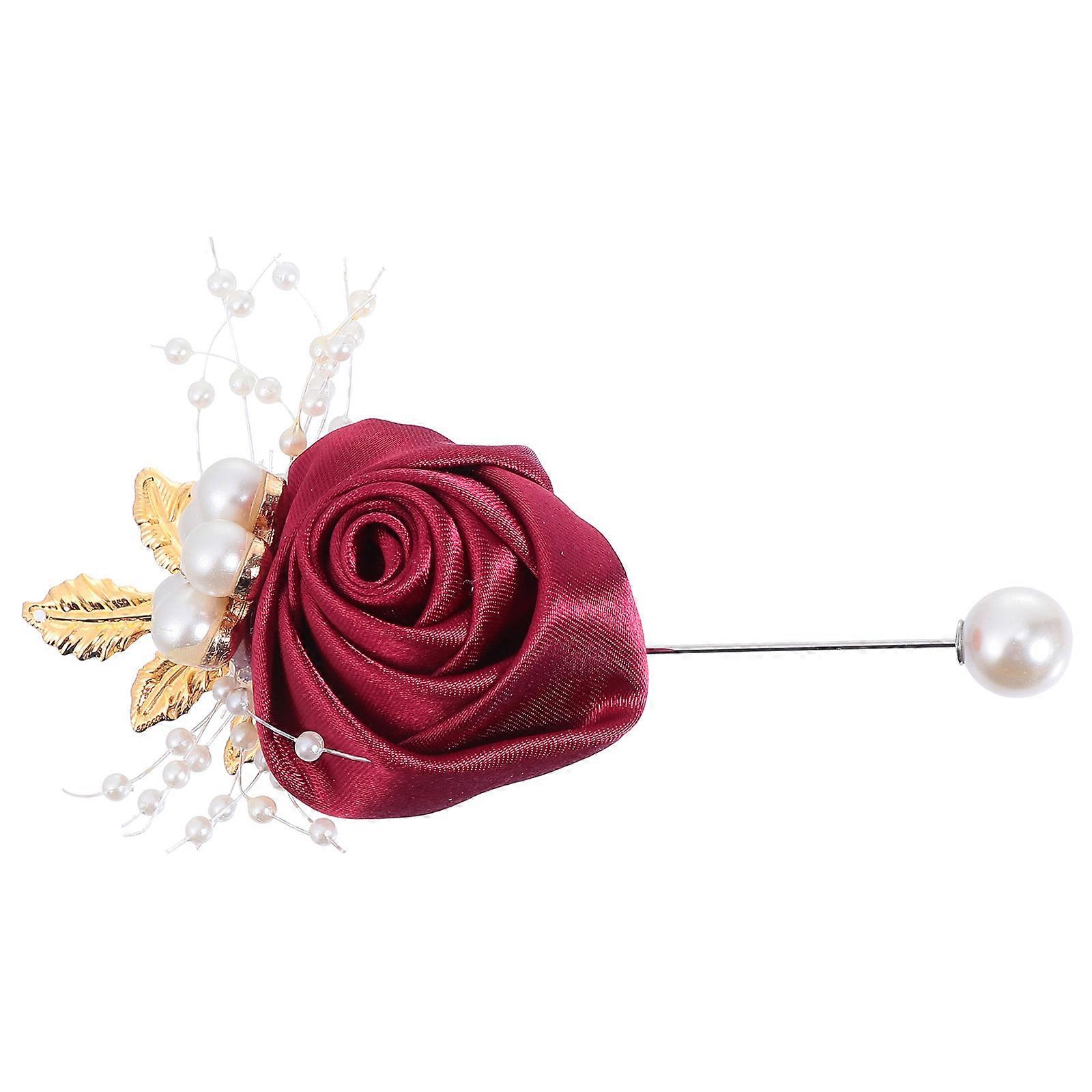 Elegant Dark Red Handmade Silk Cloth Rose Brooch for Decor with Beads Covering Pin 1pc