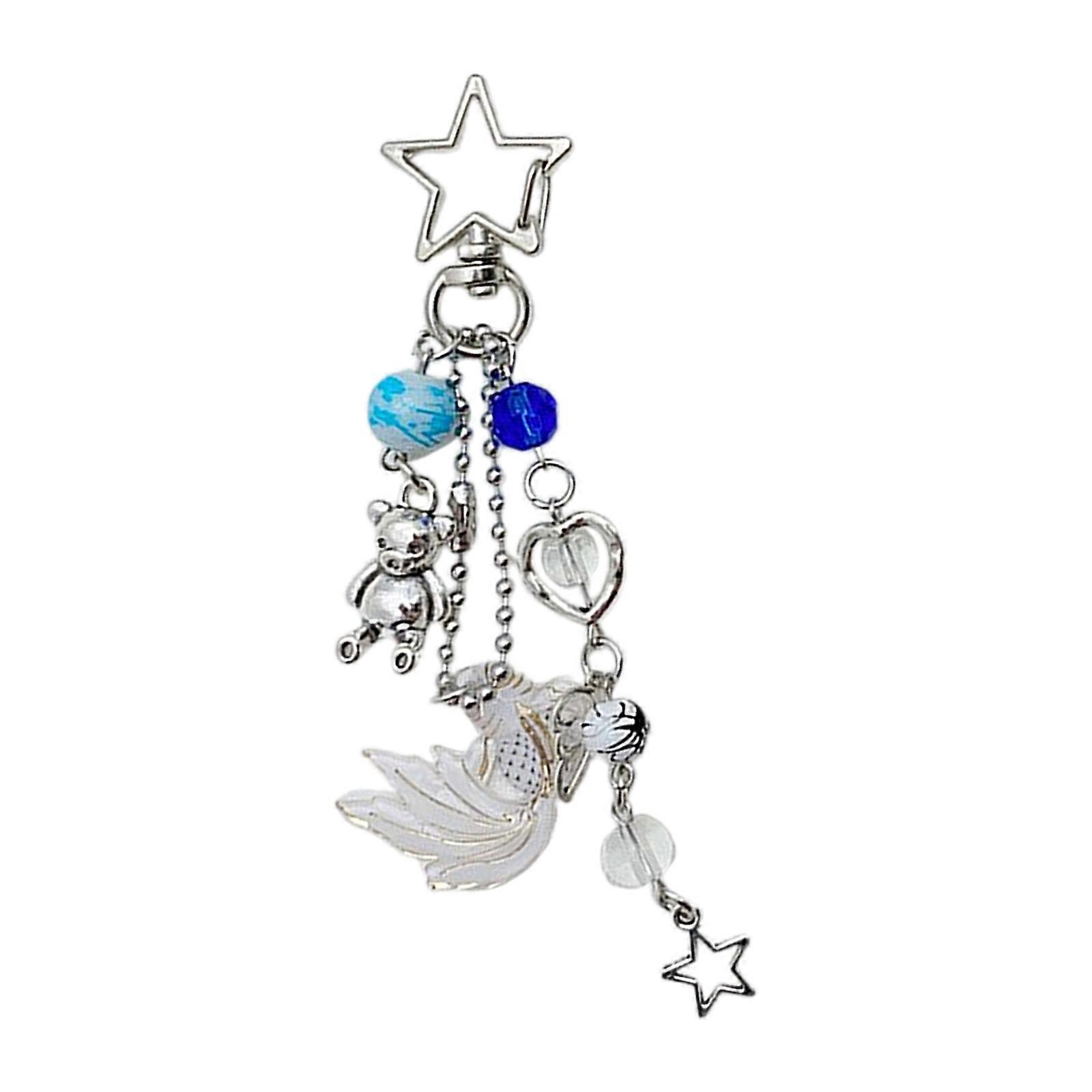 Elegant Jellyfish Phone Strap with Star Pendant Fashion Beaded Keyring Sturdy Key Holder Craft Supplies for Daily Use White