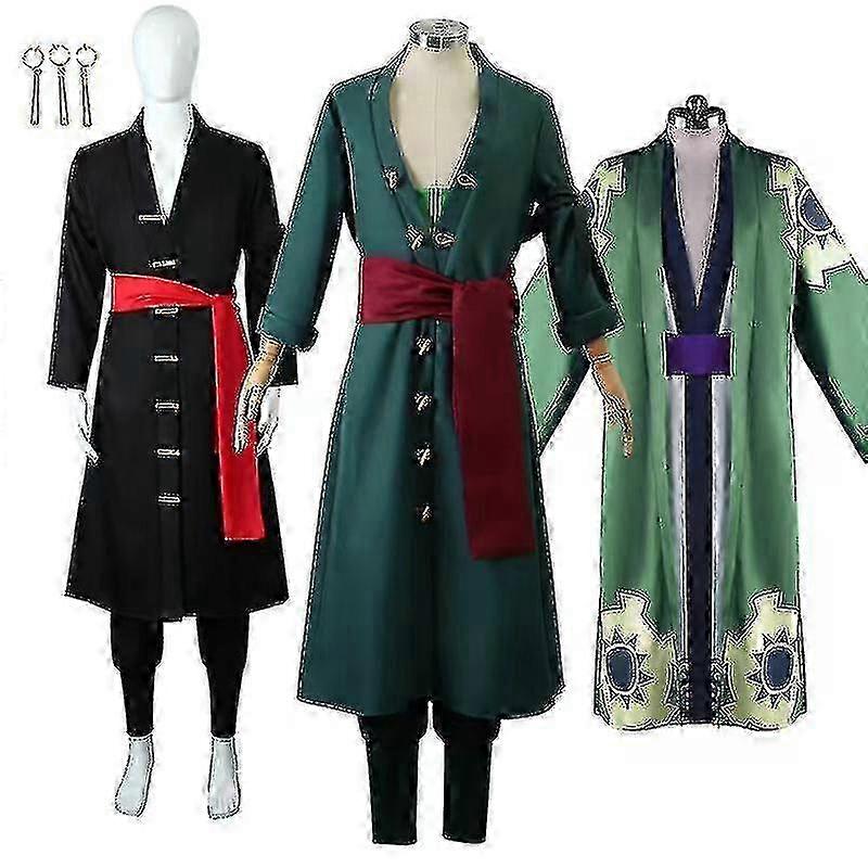 Anime One Piece Roronoa Zoro Cosplay Costumes Kimono Halloween Costumes For Men Role Play Clothing Party Uniform Suit Wig Coat-r