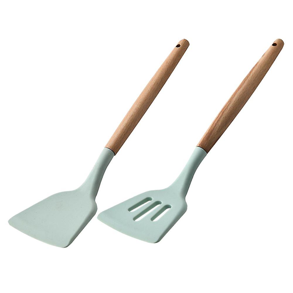 Kitchen Utensils Spatula Turner + Slotted Turner Set Nonstick Wooden Handle