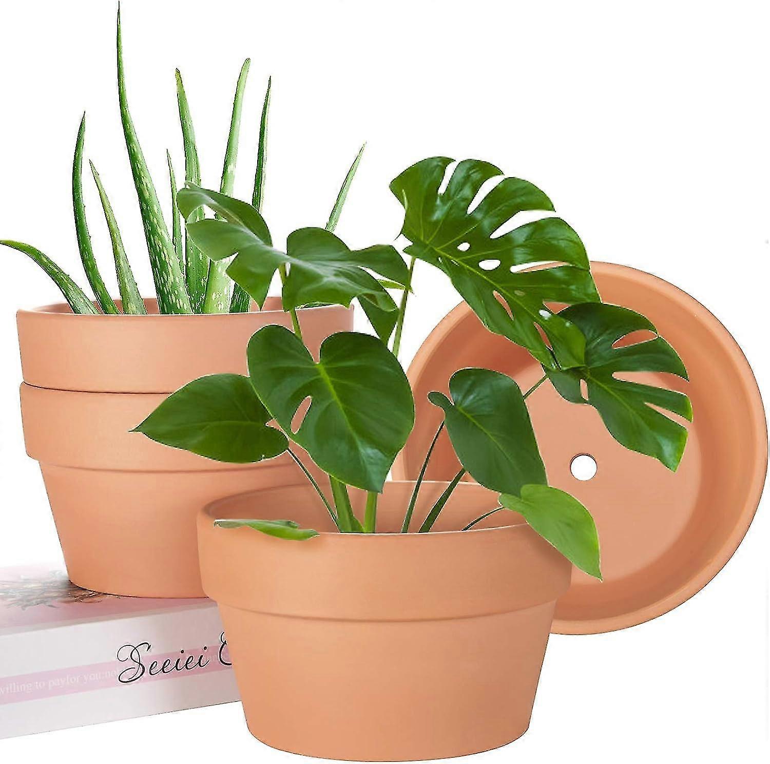 Terra Cotta Pots 6 inch, Pots for Plants with Drainage Hole, Small Clay Pots for Cactus, Pack of 4
