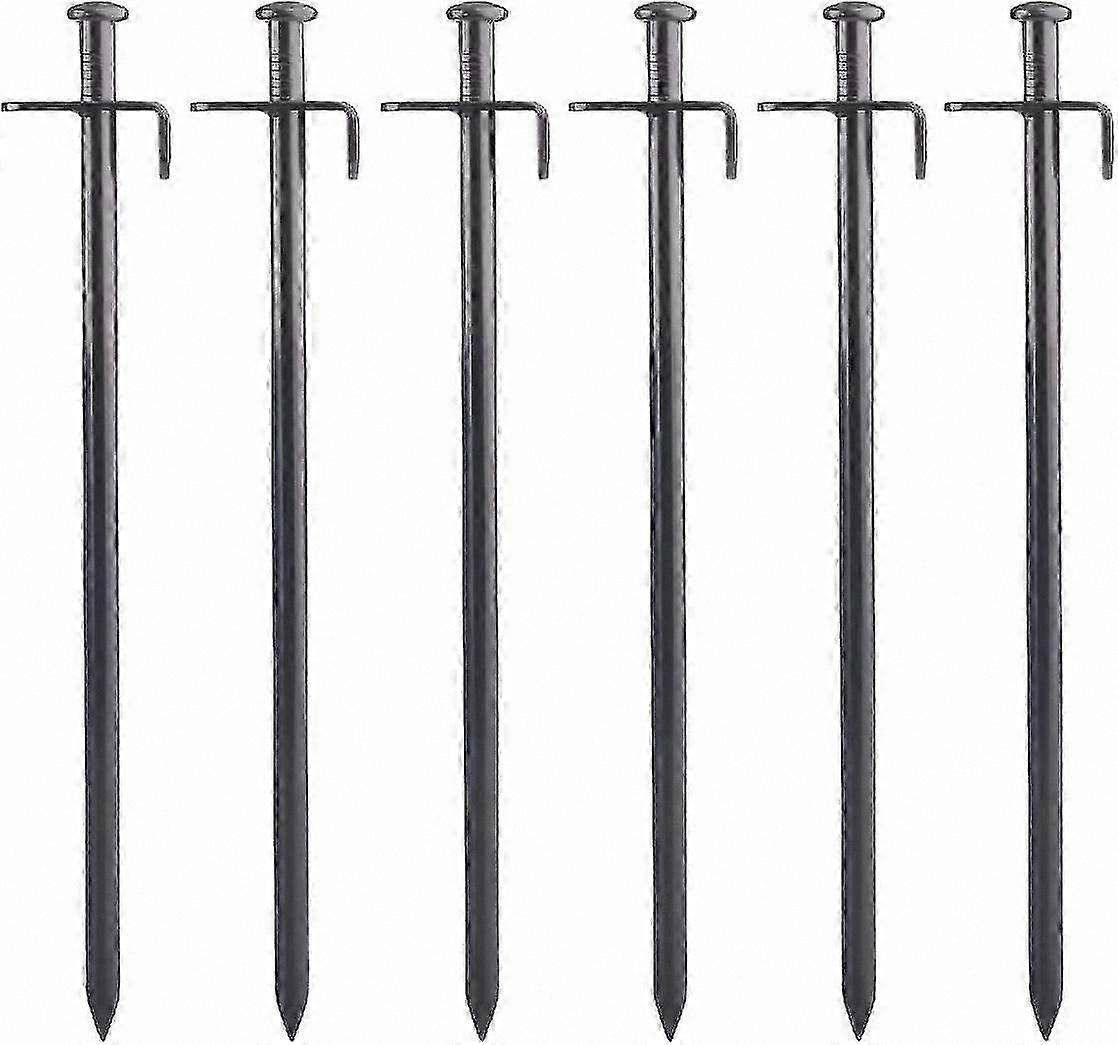 Tent Pegs Steel Ground Stakes Forged Steel Tent Pegs Heavy Duty Camping Tent Stakes Metal Solid Pegs with Carrying Bag (8in 20cm) MATERIAL: The tent pegs are made of steel and have strong corrosion resistance and wear resistance. The head of the nail is round, increasing the force area when the hammer hits, making it more solid and stable. EASY TO REMOVE: The hole and hook of the ground nail can fix the rope, and it is also convenient to pull out the ground nail using a hammer. HIGH STRENGTH: The pointed tip design allows the ground nails to easily plunge into the soil, while the tip has been partially flattened to reduce the risk of hand injury. APPLICATION: The steel tent stakes are stronger and more stable, and are less likely to loosen. Suitable for camping and picnic activities. Color: Black Size: 20cm Quantity: 6 pieces