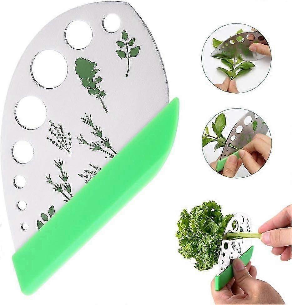 Leaf Herb Stripper 9 Holes Graters, Stainless Steel Kitchen Gadgets Peeler Tool, 2in1 Curved edge kitchen knife Cutter for Kale, Rosemary Thyme