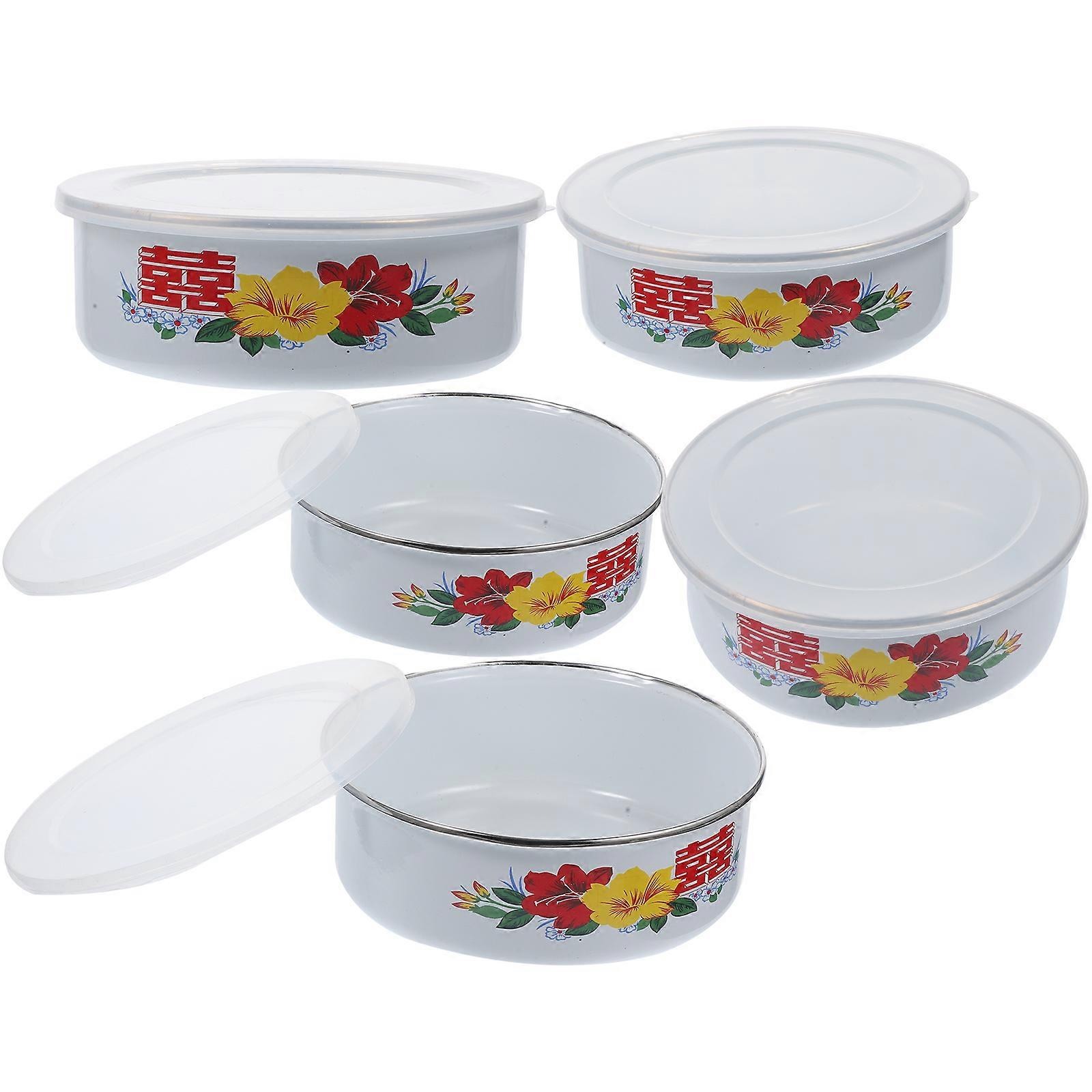 Small Ceramic Bowls Enamelware Salad Bowls Sealed Lid Stackable 5Pcs