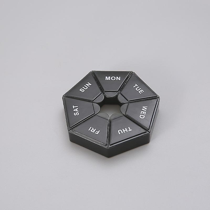 Easy to Open: You can easily open the pill box even if you only use one hand, once locked, the pill box will stay closed, ensuring your pills are safe, even the elderly or injured people can easily and conveniently use their hands, not afraid of pills fall out. 7 DAYS: These pill boxes are clearly labeled with each day of the week (Monday-Sunday) to help you better distinguish them, and the pill box even reminds you when to take your medicine for your convenience. LARGE CAPACITY: This weekly pill organizer features large capacity and weekly label printing, allowing you to easily fill and sort your weekly pills. Allows you to easily track and maintain schedules and medications through it; Different colors allow you to fill different pills for easy distinction and taking. High-quality material: These pill organizers are made of high-quality plastic, non-toxic, BPA- free, durable, allowing you to store and organize your pills with confidence; With the clear plastic lid, you can easily distinguish your medicines without opening the lid. Note: Pill storage box only included, no other accessories shown in the picture Shipment Quantity: 1 piece Product color: black Product size: about 8.3*8.3*1.7cm
