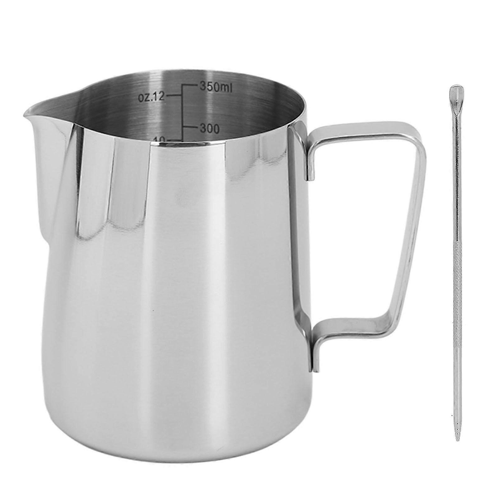 Milk Frothing Pitcher With Latte Art Pen Gloss Sliver 304 Stainless Steel Inner Scale Coffee Steaming Milk Creamer Cup 350ML