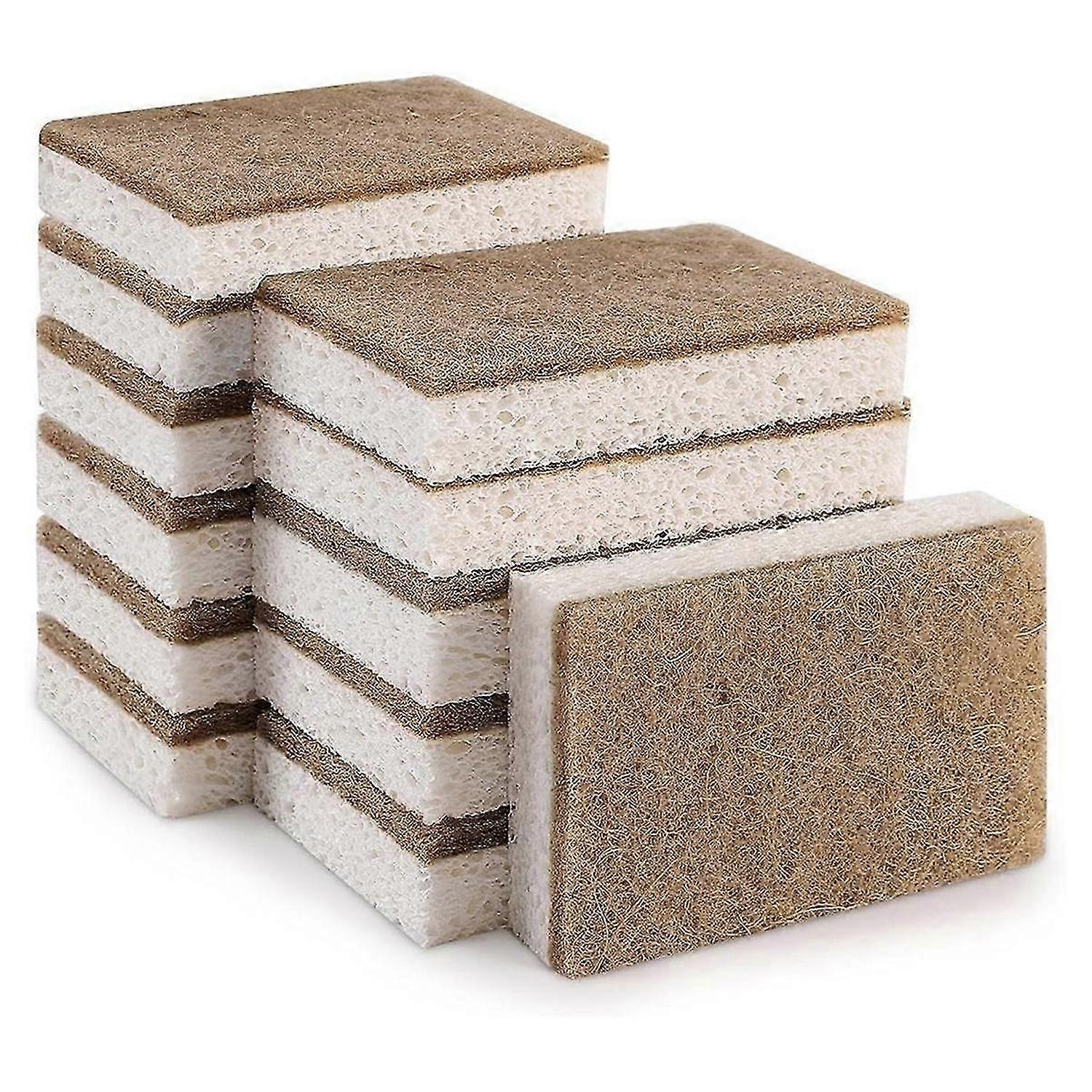 Eco-Friendly Natural Sponges for Dishes 12 Pack - Biodegradable Kitchen Sponge with Compostable Coconut Scrubber